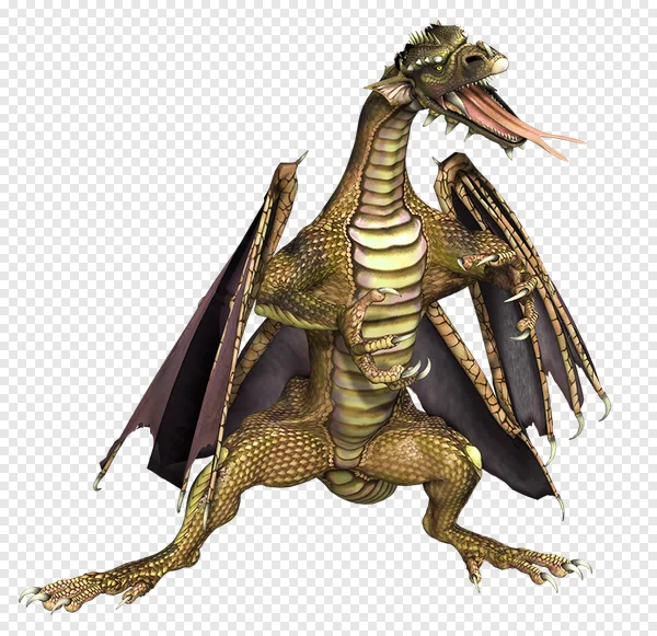Unleash the power of fantasy with this stunning, high-quality Golden Dragon PNG. Featuring intricate golden-bronze scales, formidable claws, menacing sharp teeth, an open mouth with a long, extended tongue, and majestic tattered wings, this transparent mythical creature is perfect for adding a touch of epic adventure to your designs. Ideal for game developers, fantasy artists, storytellers, and graphic designers looking for a powerful monster asset. Download this magnificent beast for free and bring your creative projects to life with its detailed render and fierce pose!