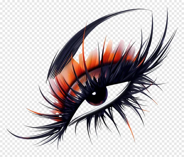 Discover our stunning free PNG of an abstract, futuristic eye. This unique digital art piece features vibrant fiery orange and red hues contrasted with dramatic, dark blue and black spiky eyelashes, all set against a sleek black background. Perfect for adding a touch of modern, edgy elegance to your graphic design projects, presentations, wallpapers, or creative compositions. Download this high-resolution transparent PNG for free and bring a bold, captivating aesthetic to your next design. Explore the depth of this artistic eye illustration today!