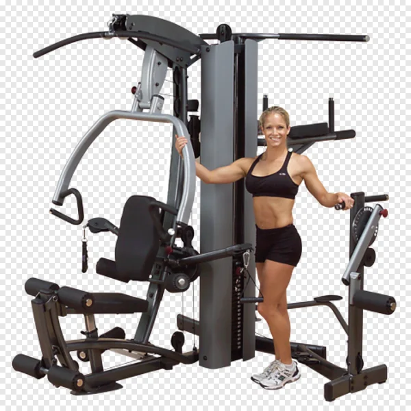 Download this high-quality free PNG image featuring a strong, smiling woman posing confidently with a grey multi-station home gym machine, showcasing its comprehensive design. Ideal for fitness websites, workout apps, health blogs, personal trainers, marketing materials, or any project promoting health, strength training, and home fitness. The transparent background ensures easy integration into your designs. Inspire your audience with this dynamic visual of a fit female model in athletic wear with professional gym equipment. Get this versatile free PNG image today to enhance your visual content!