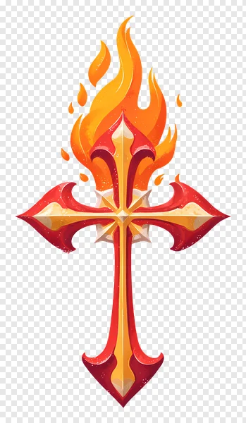 Ignite your designs with this striking Flaming Cross PNG, featuring an ornate red and gold cross engulfed in vibrant orange and yellow flames. This captivating religious symbol, depicted with dynamic fire, offers a powerful visual for various projects. Perfect for spiritual graphics, fantasy themes, game assets, church bulletins, or personal creative works. With its transparent background, seamless integration into any design is effortless. Download this high-quality, free PNG image today and add a touch of divine passion and mystery to your digital creations. Experience the dramatic blend of faith and fire.