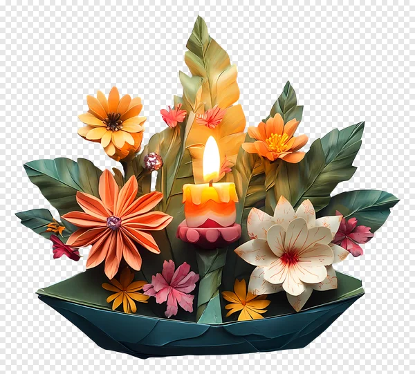Download this beautiful floral candle arrangement PNG for free! Perfect for adding a touch of warmth and serenity to your designs. Featuring vibrant orange, yellow, and white flowers surrounding a glowing candle, this high-quality image is ideal for invitations, website graphics, social media posts, and more. Enhance your projects with this stunning, transparent background floral design. Get your free download now!