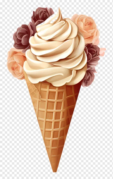 Download this beautiful floral ice cream cone PNG image for free! Featuring a creamy vanilla swirl topped with delicate rose blossoms and a classic waffle cone, this high-quality graphic is perfect for summer designs, dessert-themed projects, invitations, stickers, and more. Enhance your creative work with this unique and charming illustration. Transparent background for easy integration into your designs. Get your free download now!
