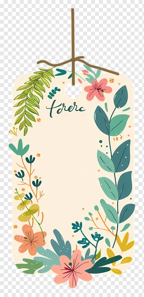 Download this beautiful floral tag PNG for free! Featuring a delicate arrangement of leaves, flowers, and the word 'Forere' in elegant script, this botanical illustration is perfect for gift tags, wedding decorations, scrapbooking, or adding a touch of nature to your designs. High-resolution and transparent background for easy integration into your projects. Enhance your creative work with this free, versatile graphic!