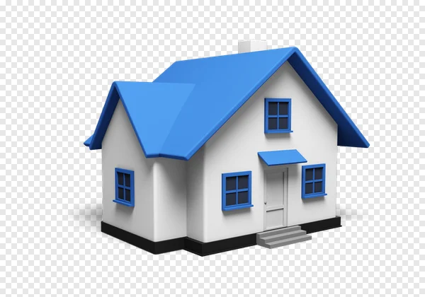 Download this captivating 3D house PNG for free! This high-quality, transparent image showcases a charming white home with a striking blue gabled roof, matching window frames, and a welcoming front door with an awning. Rendered in a clean, modern 3D style, it's perfect for real estate websites, property listings, home insurance marketing, construction and renovation project visuals, or general housing-themed content. Enhance your websites, presentations, and graphic designs with this versatile and visually appealing digital asset, available for instant, free download with a transparent background.