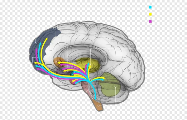 Unlock the complexities of the human mind with this stunning, free 3D brain anatomy PNG. This detailed illustration beautifully visualizes intricate neural pathways, depicted by vibrant cyan, yellow, and magenta arrows connecting core brain structures. Explore the transparent cerebral cortex, highlight areas like the thalamus, cerebellum, amygdala, and brainstem. Ideal for neuroscience students, educators, researchers, or anyone needing a high-resolution medical illustration for presentations, websites, or educational materials. Download this transparent background PNG instantly to enhance your projects with accurate and engaging brain imagery.