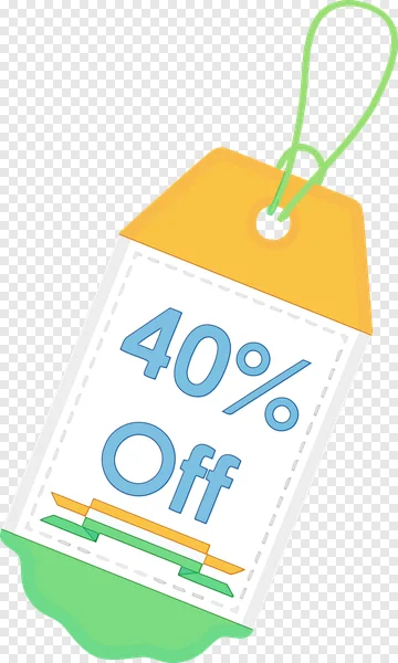 Boost your marketing efforts with our vibrant '40% Off' discount price tag PNG, available for free download! This high-quality vector illustration features bold blue text on a stylish tag with a yellow top and a playful green wavy bottom, complete with a dotted tear-off line. Perfect for e-commerce websites, digital advertising, social media campaigns, flyers, or any promotional material, its transparent background ensures seamless integration into your designs. Attract customers and highlight your special deals with this compelling and ready-to-use graphic. Download now to elevate your sales promotions!