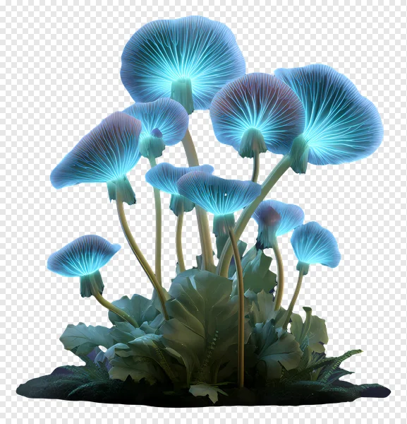 Discover the magic with this stunning, free PNG download featuring a captivating cluster of bioluminescent blue glowing mushrooms. Each mushroom cap radiates an ethereal aqua light from its intricate gills, creating a mystical atmosphere against the dark background. Perfect for fantasy-themed designs, gaming assets, enchanted forest scenes, digital art, presentations, or adding an otherworldly touch to any creative project. Download this high-quality, transparent PNG image today and bring a touch of glowing wonder to your designs for free!