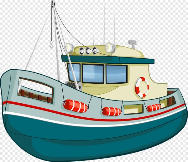 Dive into your next project with this charming, high-quality free cartoon fishing boat PNG image! Featuring a vibrant teal hull, cream-colored cabin, red and white lifebuoy, and orange fenders, this detailed nautical illustration is perfect for adding a touch of marine adventure. With a transparent background, it's ideal for children's books, educational materials, website graphics, game assets, or any creative design needing a friendly watercraft. Download this versatile fishing vessel clipart for free and make your designs sail!