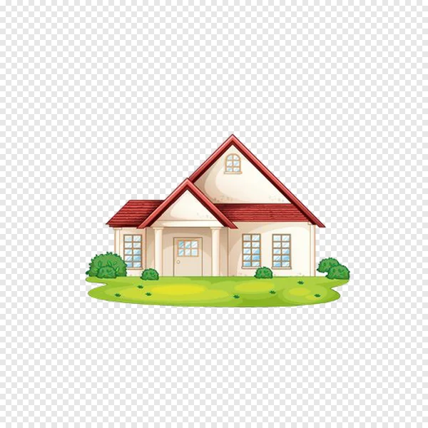 Download this delightful cartoon house PNG image for free! Featuring a charming detached home with a classic red gabled roof, clean white walls, and a lush green lawn, this high-quality illustration is perfect for a wide range of creative projects. Use it for real estate presentations, educational materials for kids, website graphics, brochures, or any design needing a friendly home icon. Its transparent background makes integration seamless into your designs. Get your free residential dwelling illustration today and add a touch of warmth and simplicity to your projects!
