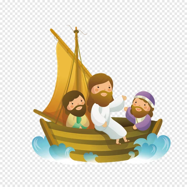 Download this charming free PNG image featuring a cartoon depiction of Jesus with two disciples in a wooden sailboat, gently riding the waves. This high-quality, transparent PNG is perfect for children's Bible lessons, Sunday school materials, religious presentations, church graphics, or any creative project needing a heartwarming Christian illustration. Ideal for conveying stories of faith, fellowship, and biblical adventures. Enhance your digital designs with this cute and friendly Jesus character and his companions. Get your free download now and bring this inspiring scene to life!