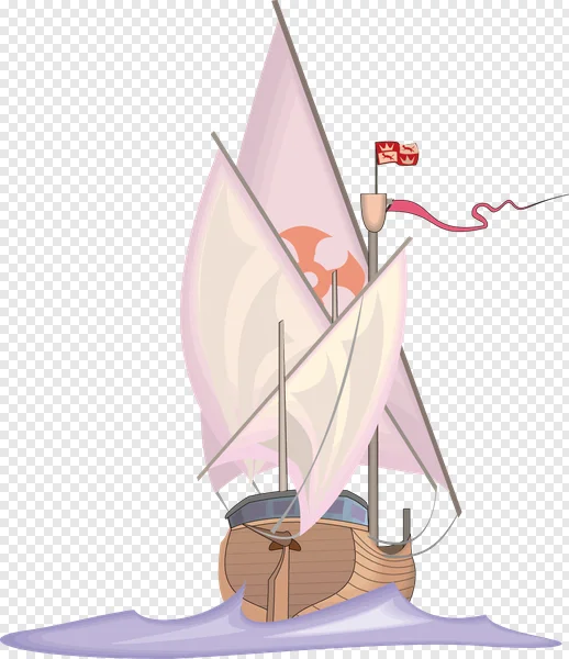 Embark on a creative voyage with our free cartoon sailing ship PNG! This vibrant clipart features a charming caravel-style boat with light pink and beige sails, a distinctive red flag adorned with crowns, and a flowing pink banner, all set against playful purple waves. Perfect for adding a touch of adventure, history, or fantasy to your designs. Ideal for educational materials, game assets, website graphics, children's books, or personal projects. Download this high-quality, transparent PNG image instantly and set sail on your next creative endeavor without any cost. Enhance your digital art with this unique and captivating historical vessel illustration.