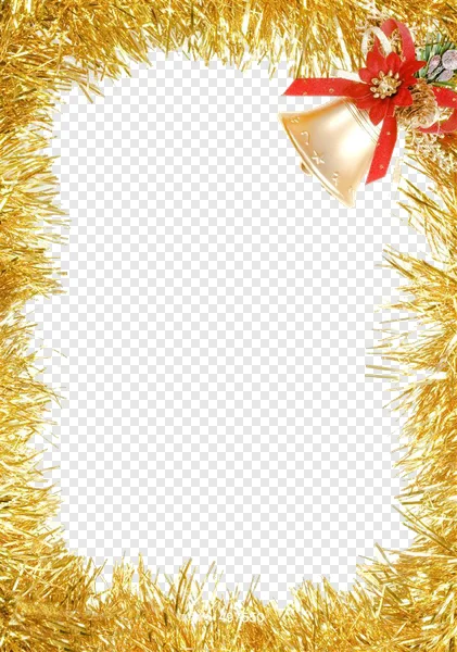 Download this stunning free Christmas Frame PNG, showcasing a vibrant golden tinsel border surrounding a white background, perfect for your holiday messages. Adorned with a classic gold Christmas bell, a brilliant red poinsettia flower, and a charming pinecone in the top right, this high-quality transparent PNG is ideal for crafting festive greeting cards, party invitations, scrapbooking, social media graphics, or adding a joyful touch to any digital project. Embrace the seasonal spirit with this versatile and free design resource. Start creating your dazzling holiday visuals now!