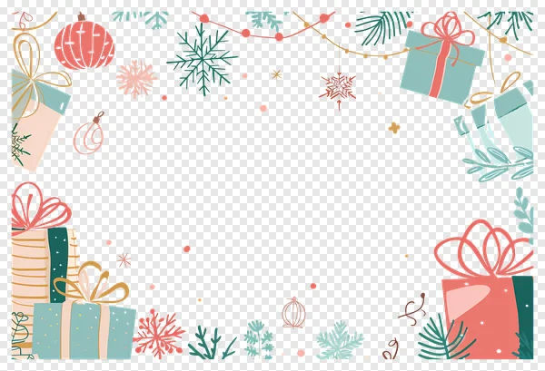 Download our charming Christmas Gifts & Snowflakes Border PNG for free! This festive, hand-drawn winter frame features delightful pastel gift boxes, whimsical snowflakes, pine branches, and subtle garlands, all on a transparent background. Perfect for holiday greeting cards, invitations, social media posts, scrapbooking, or adding a cozy seasonal touch to any design project. Get this beautiful, high-quality PNG for your personal and commercial use now!