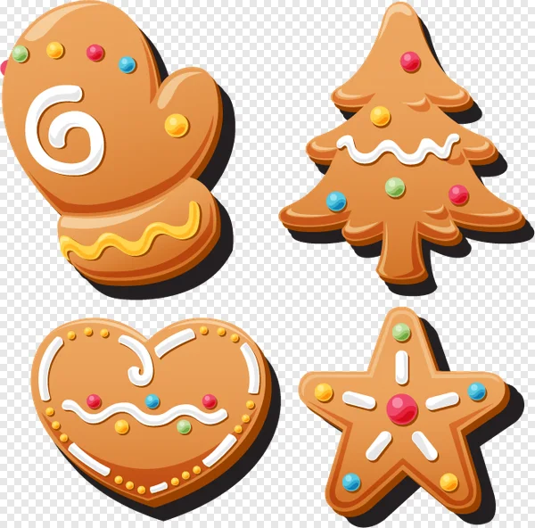 Download this delightful collection of free gingerbread cookies PNG images, perfect for your festive projects! This charming set features four beautifully decorated gingerbread shapes: a cozy mitten, a classic Christmas tree, a sweet heart, and a radiant star. Each cookie is adorned with intricate white icing and colorful sprinkles, giving them a warm, homemade feel. Ideal for holiday greetings, digital scrapbooking, website banners, social media posts, classroom materials, or any design needing a touch of seasonal cheer. Get these high-quality, delicious-looking Christmas cookie illustrations with transparent backgrounds for instant, easy integration into your creative work. Free for personal and commercial use.