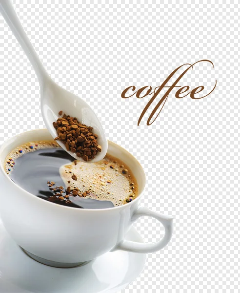 Download this stunning, high-resolution coffee PNG image for free! Featuring a classic white cup filled with rich, dark coffee, a spoon sprinkling in coffee granules, and elegant "coffee" script text. Perfect for websites, blogs, presentations, social media, or any project needing a caffeine boost. Enhance your designs with this beautiful and versatile coffee graphic. No attribution required!