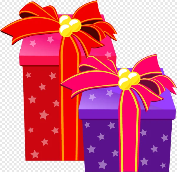 Unwrap joy with our free, high-quality PNG of two vibrant gift boxes! This charming illustration features a festive red box and a playful purple box, both adorned with delightful star patterns and elegant bows – one in bright red, the other in cheerful fuchsia, topped with golden accents. Perfect for adding a touch of celebration to your digital projects, social media posts, invitations, greeting cards, or website design. Download this transparent background image instantly and bring festive cheer to any occasion – birthdays, holidays, anniversaries, or special events. Get your free gift box PNG now!