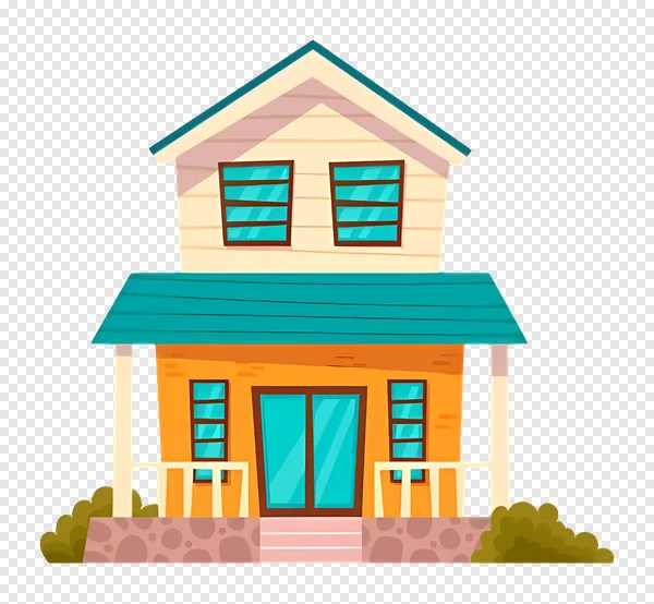 Download this adorable, high-quality, two-story cartoon house PNG image for free! Featuring a charming design with a vibrant teal roof, warm orange lower level, and welcoming front porch, this vector illustration is perfect for adding a touch of whimsy to your digital projects. With its transparent background, it integrates seamlessly into children's books, game designs, educational materials, website graphics, or presentation slides. Get this cute, fully editable style home graphic instantly and enhance your creative work without any cost!