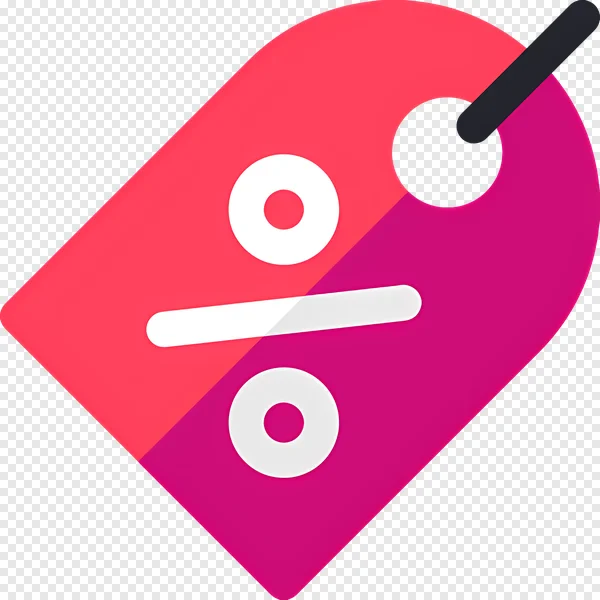 Download this vibrant, high-quality discount tag PNG image for free! Perfect for websites, marketing materials, social media posts, and any design project needing a visual representation of sales, promotions, or special offers. This pink gradient tag with a percentage symbol is ideal for attracting attention and highlighting deals. Get your free download now and boost your design!