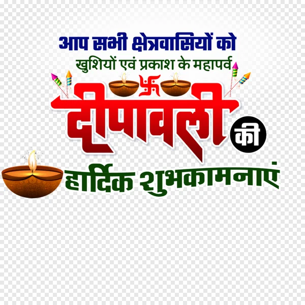 Download this beautiful, high-quality 'Happy Diwali' wishes PNG image for free! Perfect for creating festive social media posts, greeting cards, website graphics, and more. This vibrant design features traditional Diwali elements like diyas, fireworks, and the sacred 'Swastika' symbol, along with Hindi text wishing joy and prosperity. Spread the light and celebrate the festival of lights with this free PNG download. No attribution required!