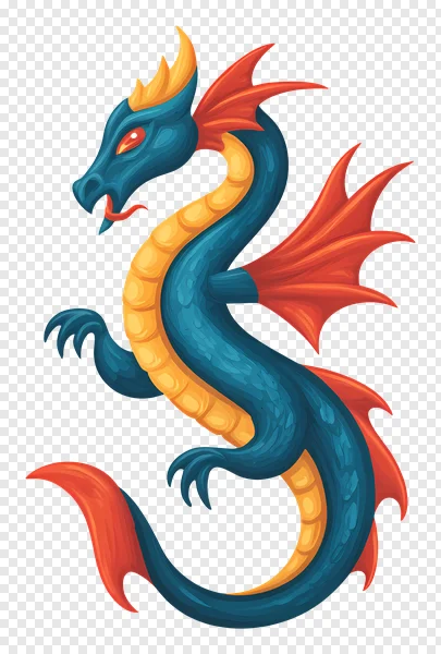 Download this stunning, high-quality dragon PNG image for free! Featuring a vibrant, cartoon-style eastern dragon with intricate details, this illustration is perfect for fantasy art, game development, children's books, website graphics, and more. The dragon boasts a beautiful color scheme of blues, oranges, and yellows, with fiery red wings and fins. Instantly enhance your projects with this majestic creature – no attribution required! Get your free download now!