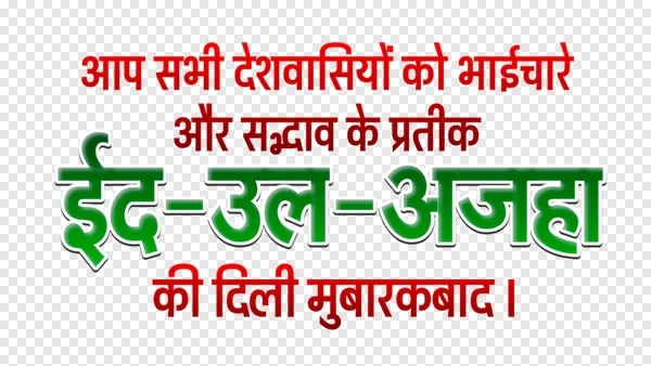 Tags: Bakra Eid Eid Mubarak Eid-ul-Adha Hindi greeting India Islamic festival Mubarak Muslim holiday brotherhood celebration digital greeting festival wishes green text greetings harmony red text social media text graphic transparent PNG wishes