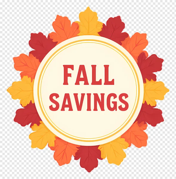 Download this eye-catching 'Fall Savings' transparent PNG image for free, perfect for your seasonal promotions and marketing campaigns! Featuring bold red text encased in a warm, cream-colored circular badge, beautifully framed by a wreath of rich red, orange, and golden autumn leaves. This high-quality graphic is ideal for e-commerce banners, social media posts, email newsletters, digital advertisements, and printable flyers. Leverage the charm of fall to highlight your special offers and discounts. Enhance your website and creative projects with this vibrant, ready-to-use fall foliage design. Get your transparent savings badge clipart now!