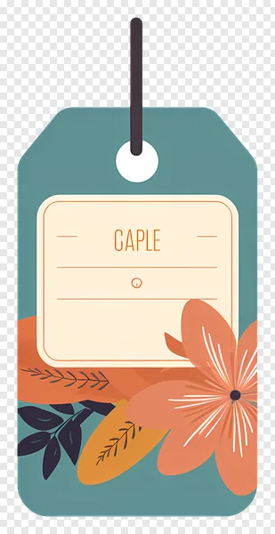 Download this exquisite free PNG floral gift tag, perfect for adding a touch of elegance to any item. Featuring a chic teal background, a prominent orange flower, and delicate dark blue botanical leaves, this tag offers a beautiful, natural aesthetic. The central customizable label area, with "GAPLE" as a placeholder, is ideal for your personalized text, brand name, or special message. Use this high-quality, transparent PNG for gift wrapping, product branding, wedding favors, event decorations, or any creative project needing a stylish and natural design element. Enhance your creations with this charming, easy-to-use graphic today!