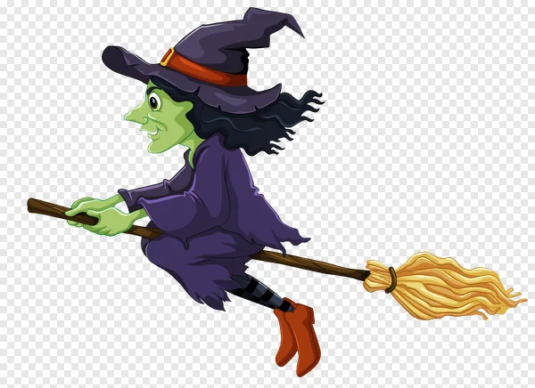 Download this enchanting free PNG of a cartoon witch gracefully flying on her broomstick! Featuring vibrant green skin, a classic pointed hat, flowing purple dress, black striped stockings, and brown boots, this delightful sorceress is perfect for your Halloween projects. Use it for party invitations, spooky decorations, educational materials, crafts, or any creative design. The transparent background makes integration easy into posters, web graphics, or social media. Get this high-quality, magical witch illustration today and add a touch of whimsy and wonder to your designs without any cost!