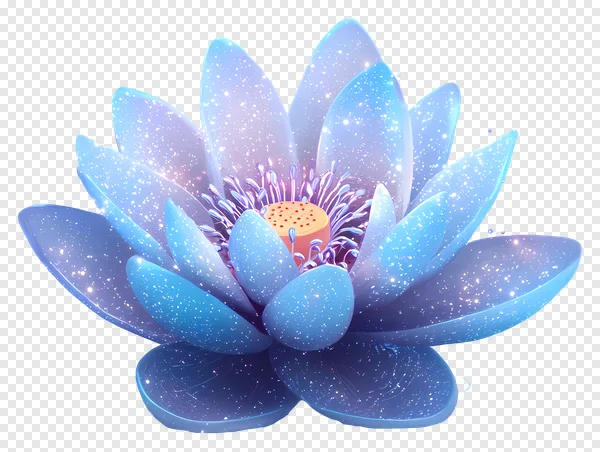Download this enchanting free PNG of a glowing blue lotus flower with a transparent background. Adorned with delicate sparkles and ethereal glitter, this iridescent botanical art piece is perfect for adding a touch of magic to your digital projects, spiritual designs, meditation resources, or dreamy graphics. Its serene beauty and mystical aura make it a unique asset for any creative endeavor. Get this high-quality, vibrant floral image instantly for personal and commercial use and illuminate your next design.