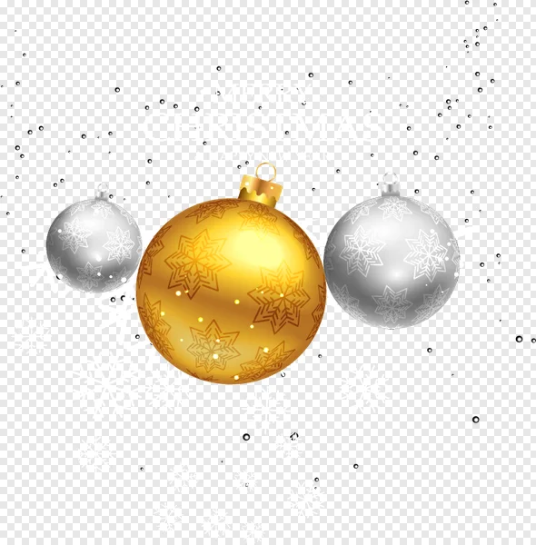 Download this stunning free PNG image featuring three exquisite Christmas ornaments! A vibrant golden bauble adorned with intricate snowflake patterns takes center stage, flanked by two elegant silver ornaments also detailed with festive snowflakes. The transparent background, sprinkled with delicate falling snow, makes it perfect for adding a touch of holiday magic to your greeting cards, social media posts, website banners, or DIY projects. Get this high-quality, transparent Christmas decoration image for your festive designs today!