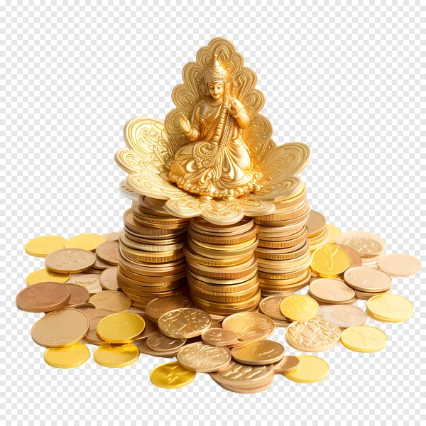 Tags: Devi Lakshmi Hindu deity Indian culture Lakshmi abundance divine blessings finance free download goddess gold coins golden statue good fortune lotus luxury money opulent prosperity religious icon spirituality transparent PNG wealth