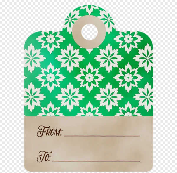 Download this beautiful, free green floral gift tag PNG! Perfect for adding a festive touch to your presents, crafts, or holiday decorations. This high-quality image features a repeating snowflake-like floral pattern in shades of green and a classic 'From/To' layout. Instantly download and use for personal or commercial projects. Enhance your gift-giving with this elegant and versatile design!