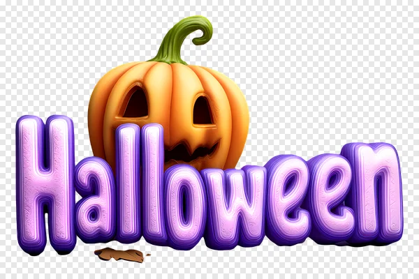 Get ready for spooky season with our free high-quality Halloween PNG! This vibrant graphic features stylized 3D purple text spelling out "Halloween," beautifully integrated with a classic orange jack-o'-lantern pumpkin. The pumpkin boasts a carved, friendly yet spooky face and a vibrant green stem. Perfect for adding a festive touch to your Halloween invitations, social media posts, website banners, party decorations, or digital projects. Download this transparent, eye-catching holiday clip art today to instantly elevate your designs. Available for free in high-resolution, it's ideal for both personal and commercial use. Don't miss out on this essential Halloween graphic!