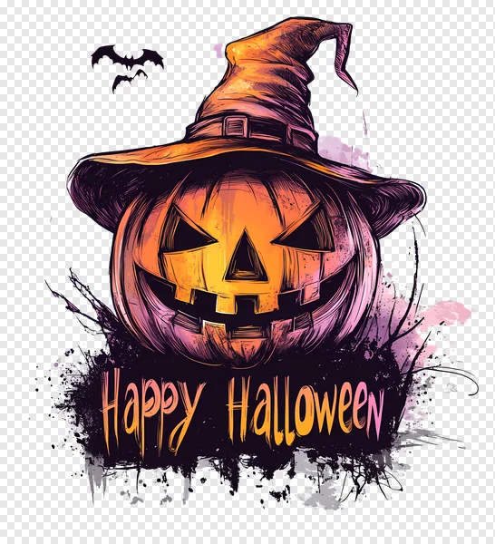 Download this spooky and vibrant Halloween pumpkin PNG image for free! Featuring a detailed jack-o'-lantern wearing a witch's hat, with bats and ghostly effects, it's perfect for your Halloween projects, website graphics, social media posts, or print designs. High-resolution and transparent background for easy integration. Get your free download now and add a touch of Halloween magic to your creations!