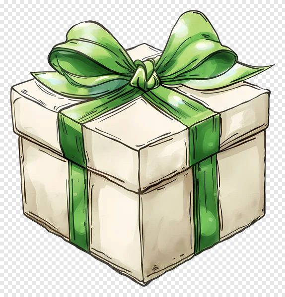 Discover our charming free PNG of a hand-drawn gift box, beautifully tied with a vibrant green ribbon and bow. This delightful illustration features a cream-colored present box with a transparent background, perfect for adding a touch of festive cheer or celebration to your digital projects. With its unique artistic, sketch-like style and watercolor hints, it's ideal for birthdays, holidays, thank you notes, social media graphics, website designs, or any occasion needing a cheerful present icon. Easily download this high-quality clipart for free and enhance your designs with a touch of artistic flair. Get your free gift box graphic today!