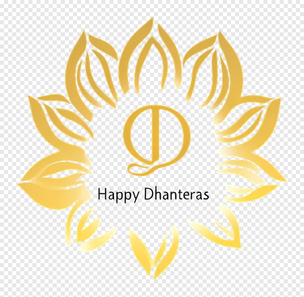 Celebrate Dhanteras and Diwali with our exquisite golden lotus design PNG. This elegant graphic features a stylized 'D' symbol, perfect for conveying prosperity and good fortune. The intricate, abstract golden petals on a striking black background make it ideal for greeting cards, social media posts, website banners, or personal projects. Download this high-quality, free transparent PNG to add a touch of festive brilliance and cultural charm to your designs. Enhance your Dhanteras wishes and blessings with this beautiful, symbolic artwork today!