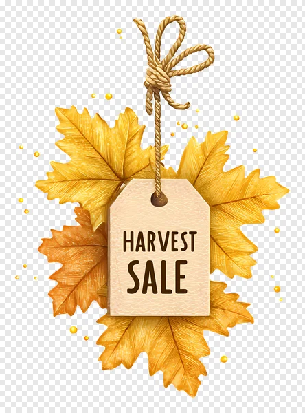 Boost your autumn marketing with our free 'Harvest Sale' transparent PNG. This eye-catching graphic features a rustic price tag adorned with vibrant golden and orange autumn leaves, tied with a natural rope, and accented with sparkling golden specks. Ideal for promoting fall discounts, seasonal sales, Thanksgiving events, or any autumn-themed campaign. Download this high-quality, transparent PNG to enhance your website banners, social media posts, flyers, or print materials. Get your free fall sale graphic now!