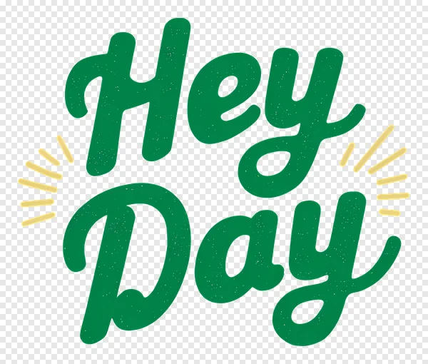 Brighten your designs with our free 'Hey Day' script lettering PNG. This high-quality graphic features a cheerful, hand-drawn green font with a playful distressed texture, complemented by vibrant yellow radiating lines. Perfect for adding a positive and energetic vibe to social media posts, digital art, greeting cards, t-shirts, posters, and personal or commercial projects. The transparent background ensures seamless integration into any creative endeavor. Download this unique and expressive typography element instantly and spread some good cheer!