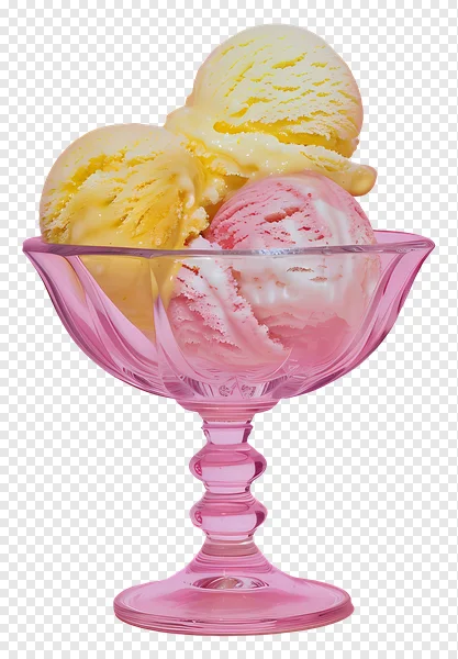 Download this beautiful, high-quality ice cream PNG image for free! Featuring a stunning pink glass bowl overflowing with delicious strawberry and mango flavored scoops, this graphic is perfect for summer designs, dessert menus, food blogs, or any project needing a sweet touch. Transparent background for easy integration. Enhance your visuals with this delightful ice cream illustration – download now!