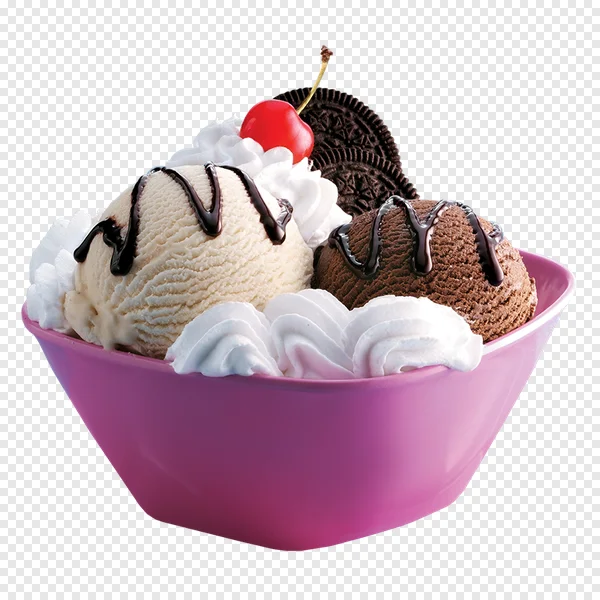 Download this delicious, high-quality ice cream sundae PNG for free! Featuring creamy vanilla and chocolate ice cream, topped with whipped cream, chocolate sauce, a bright red cherry, and a chocolate cookie. Perfect for food blogs, dessert menus, website graphics, or any project needing a sweet treat visual. Transparent background for easy integration. Get your free download now!