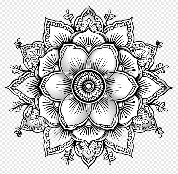 Tags: PNG black and white decorative detailed doodle floral flower free download henna style intricate line art mandala meditation mehndi monochrome ornamental spiritual symmetrical tattoo design transparent yoga zen