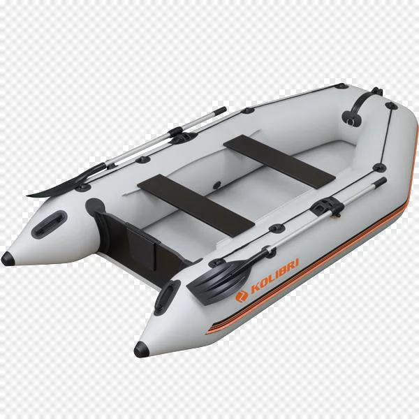 Download this high-quality, free transparent PNG image of a KOLIBRI inflatable boat, perfect for all your design needs. This sleek grey rubber dinghy features distinctive orange accent stripes, comfortable black seats, and durable oars, ready for digital adventures. Ideal for graphic designers, web developers, and content creators looking for visuals related to water sports, fishing, outdoor recreation, marine themes, or camping. Enhance websites, presentations, brochures, or digital art with this versatile and professional-grade boat graphic. Get your free download today and add a splash of aquatic fun to your projects!