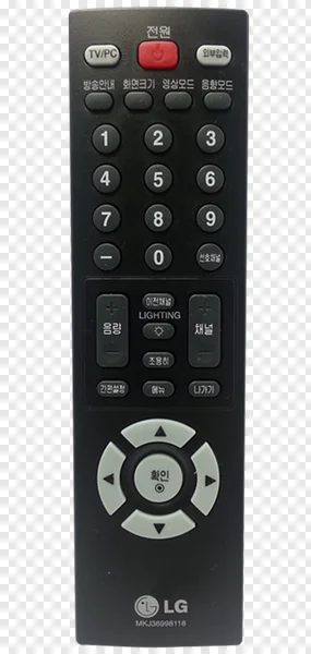 Tags: Korean text LG remote control MKJ36998118 TV remote TV/PC black remote channel buttons digital device electronics free PNG home entertainment input selector menu mute navigation buttons numeric keypad power button smart TV accessory transparent background volume control