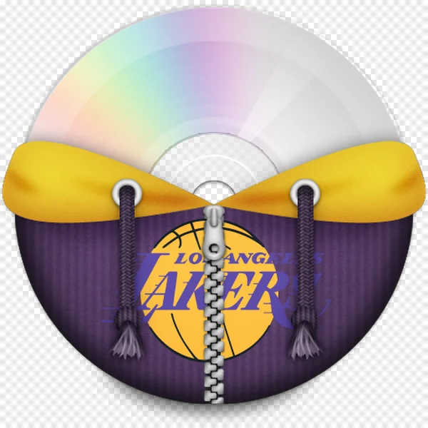 Show your team spirit with this awesome free PNG download featuring a Los Angeles Lakers-themed CD icon! This unique graphic depicts a classic disc playfully 'wearing' a vibrant purple and gold hoodie, complete with the iconic Lakers logo, a detailed zipper, and stylish drawstrings. Perfect for basketball fans, designers, or anyone looking for a cool sports icon. Use it for desktop shortcuts, media player buttons, website elements, or fan art projects. Download this high-quality, transparent PNG image today to add a touch of NBA flair to your digital collection, absolutely free!