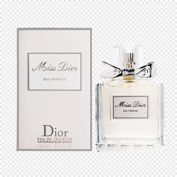 Download this exquisite free PNG image of Miss Dior Eau Fraîche perfume, featuring both the elegant glass bottle with its signature silver bow and the sophisticated white packaging box. This high-quality, transparent background image is perfect for beauty blogs, product mockups, graphic design projects, or luxury fashion presentations. Capture the essence of Dior's iconic fragrance with this beautiful and detailed visual asset, ready for instant download to elevate your creative work. Get your free Miss Dior PNG today!