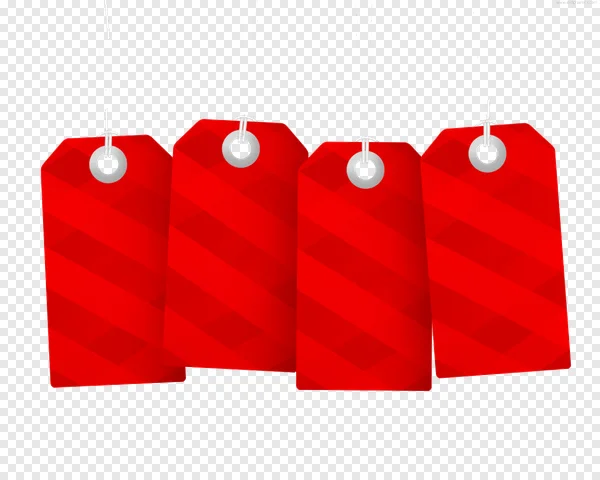 Download our free PNG image featuring four vibrant red striped hanging tags, perfect for your next sale, promotion, or special offer. These versatile blank price tags boast a modern geometric pattern and silver grommets, coming with a transparent background for effortless integration into any design project. Ideal for e-commerce websites, marketing campaigns, graphic design, or adding a stylish touch to gift labels. Get these high-quality discount labels to make your visual content pop and announce irresistible deals today!