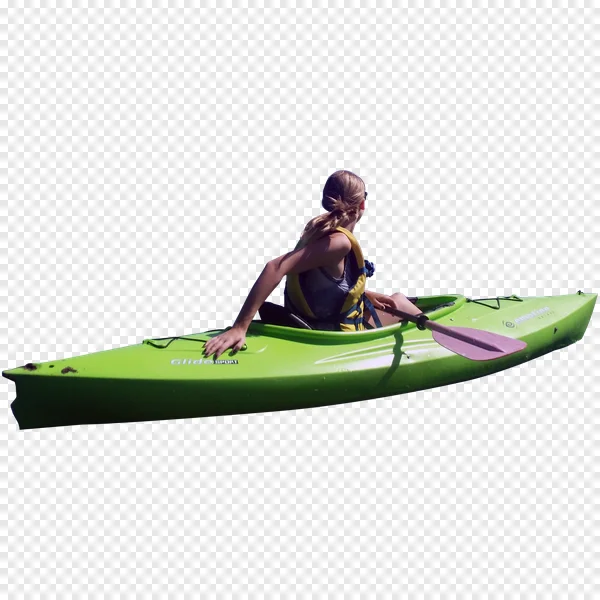 Immerse your projects in the spirit of adventure with this free PNG download of a blonde woman actively kayaking. She's paddling a vibrant green 'Glide Sport' kayak, wearing a bright yellow life vest, and using a distinctive pink paddle. This high-quality, transparent PNG image is perfect for websites, presentations, marketing materials, or educational content related to water sports, outdoor activities, summer, fitness, and recreation. Enhance your designs with this dynamic and engaging image of a solo kayaker on the water. Download it now for free!