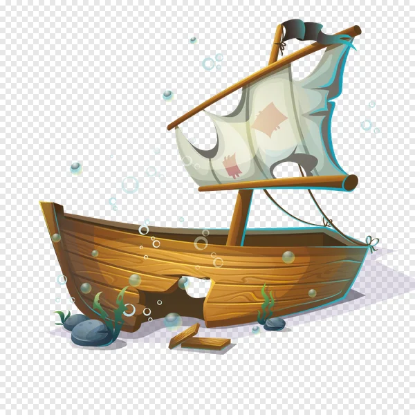 Dive into adventure with our free high-quality PNG of a cartoon sunken shipwreck! This charming illustration features an old wooden boat resting on the ocean floor, complete with tattered sails, scattered debris, realistic bubbles, green seaweed, and smooth rocks. Perfect for adding a touch of mystery or fantasy to your projects. With its transparent background, this marine-themed graphic is ideal for game development, children's books, educational materials, website design, or any creative endeavor needing an underwater element. Download this unique pirate ship wreck illustration instantly for free and bring your designs to life!
