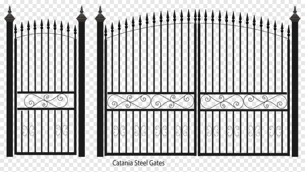 Download this high-quality PNG image of elegant Catania steel gates, perfect for architectural designs, landscaping projects, or any design needing a touch of sophistication. This free download features detailed renderings of both a single gate and a double gate, showcasing intricate scrollwork and spearhead details. Enhance your projects with this versatile and visually appealing image. Download now and elevate your designs!