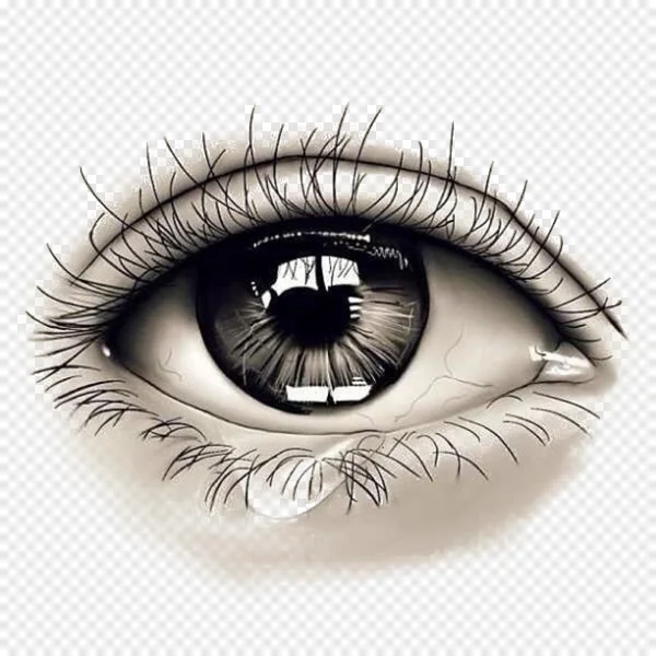Download this stunning free PNG of a crying eye drawing, rendered in a captivating black and white style. This emotional illustration features a single, prominent tear drop, beautifully detailed long eyelashes, and intricate iris reflections. Perfect for conveying deep emotion, sadness, or beauty in your designs, websites, presentations, or digital art projects. Enhance your creative work with this high-quality, transparent image, ideal for graphic designers, artists, and anyone needing evocative visual content. Get your free download now!